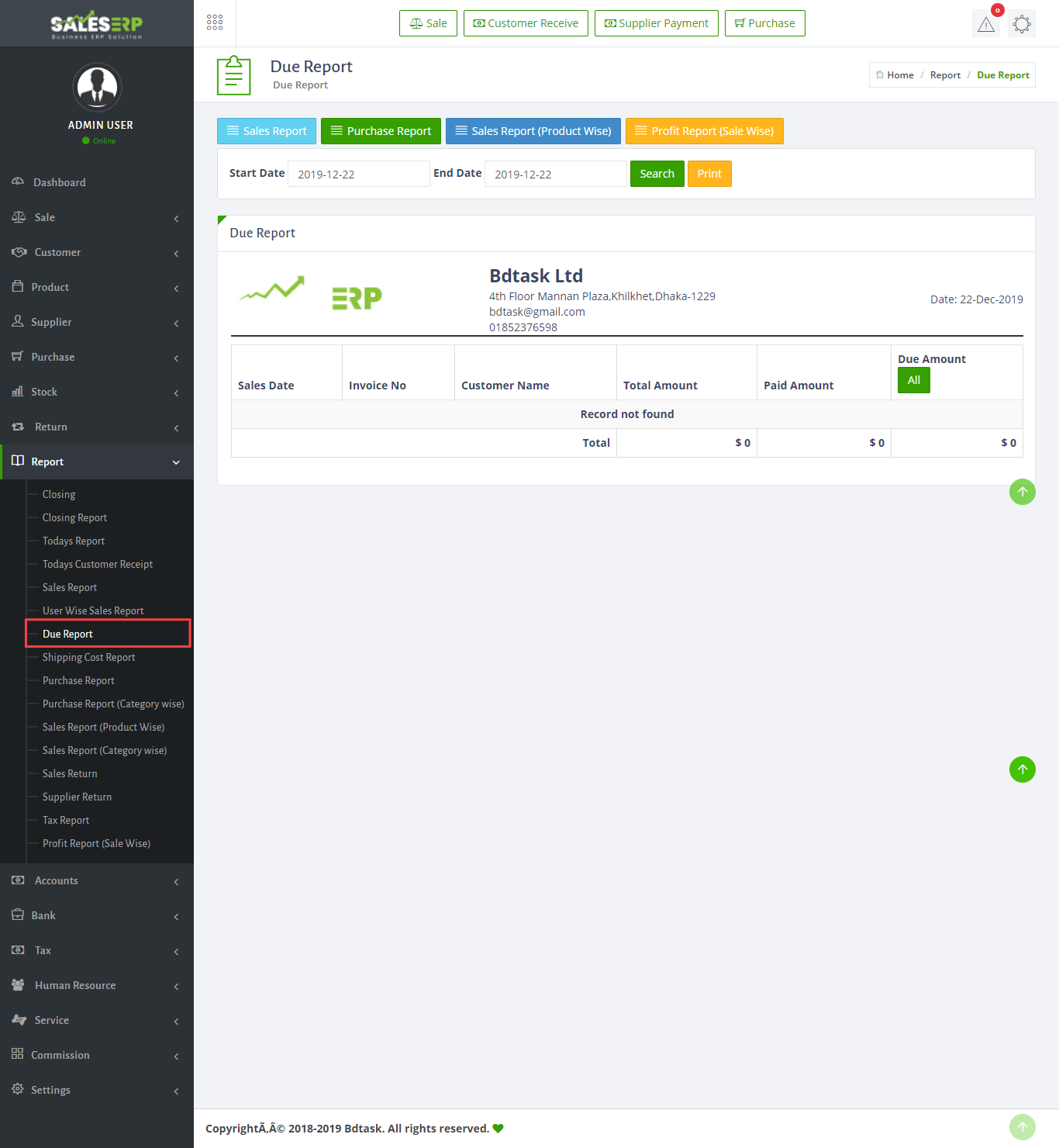 ERP Application is developed for based on all Business and product. You can see the sales report of everyday.