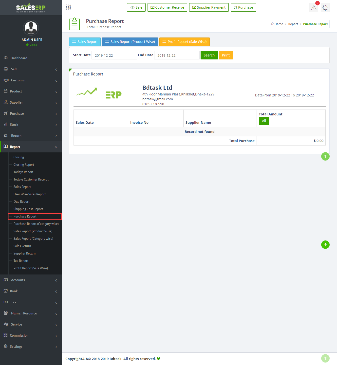 ERP Application is developed for based on all Business and product. You can see the Purchase report of everyday.