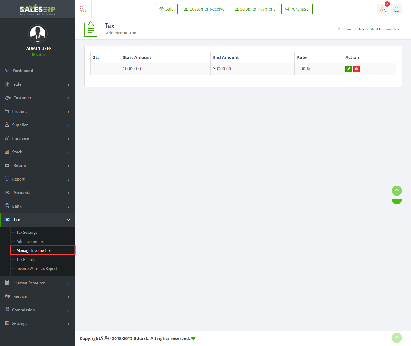- You can manage you income tax by Sales ERP also to get it just go Tax > Manage Income Tax