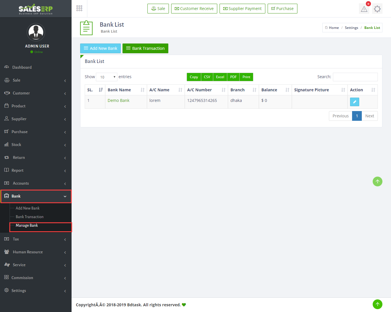 - Sales ERP has a total bank module to add manage your bank transaction just go to the Bank > Bank transaction