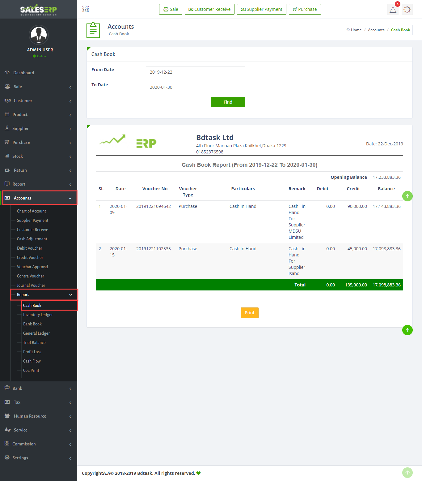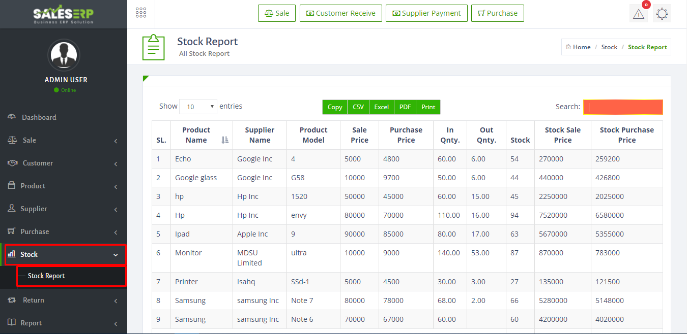 ERP Application is developed for based on all Business and product. You can see the sales report of everyday.