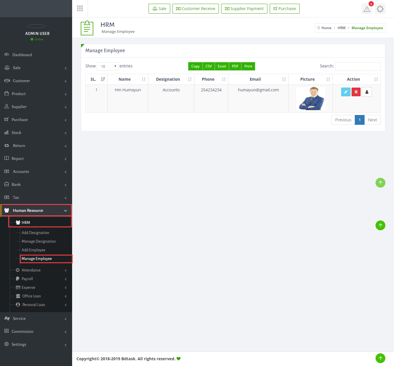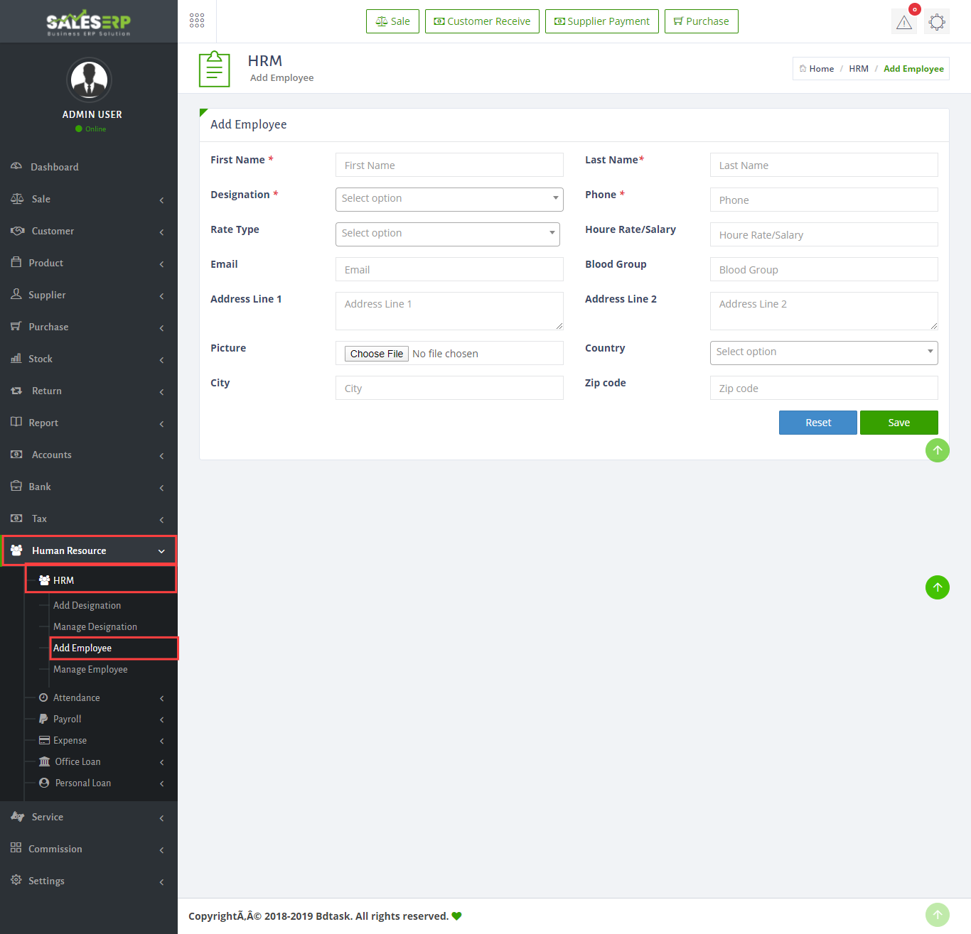 - Sales ERP has a fully illustrated Human Resources Management system. To manage your employees just go to Human Resources > HRM > Manage Employee