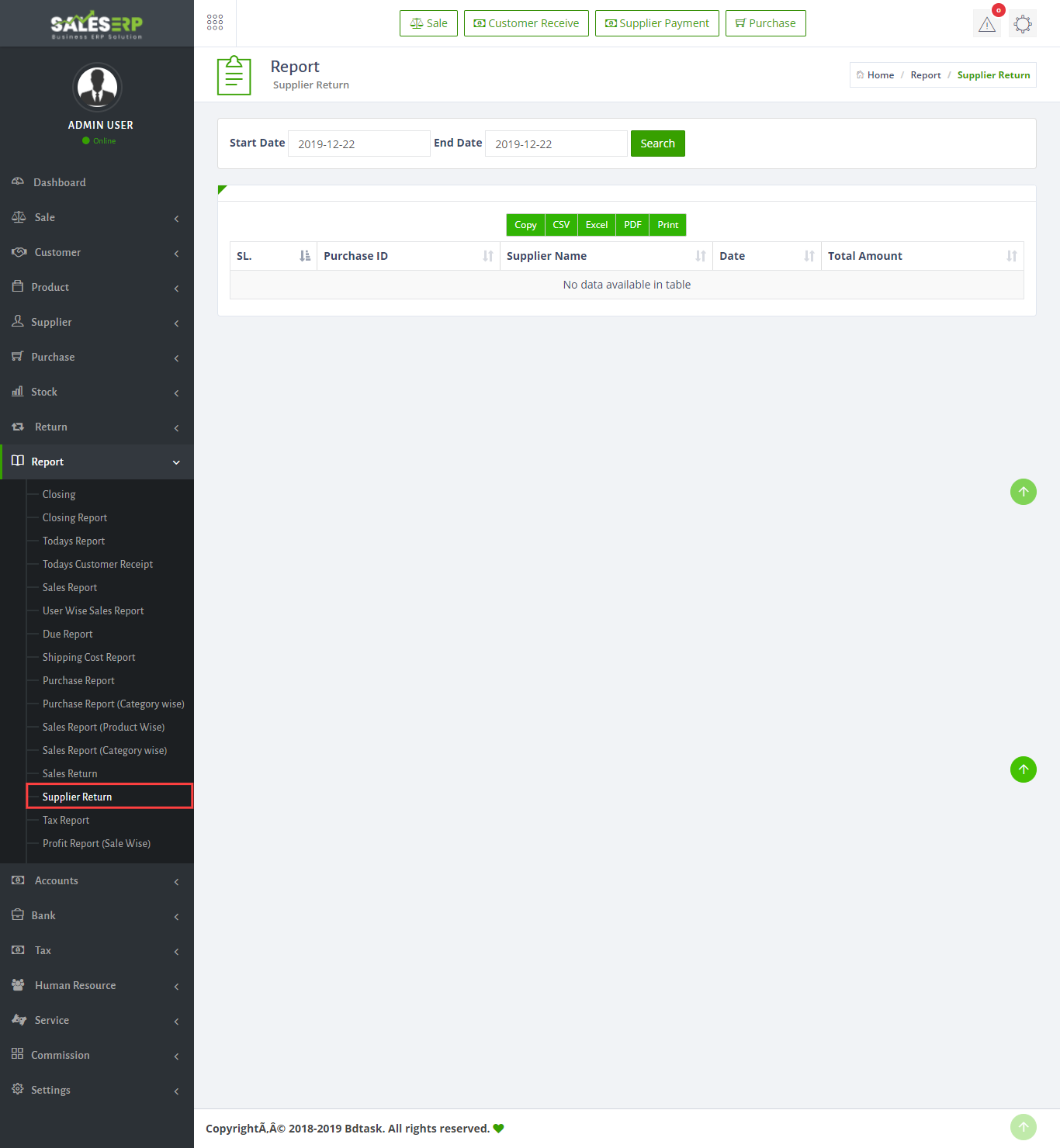 ERP Application is developed for based on all Business and product. You can see the Purchase report of everyday.